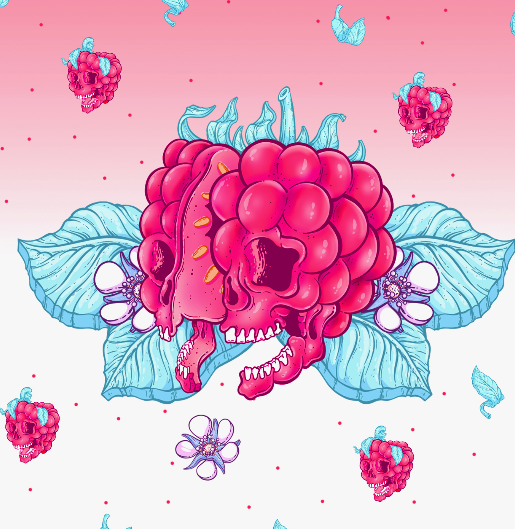 Much like some of our flavours, we want our artwork to be explosive, bright and intense. Jordan brought the Raspberry Milk Chocolate Bar to life with the tasty use of his famous screaming skull.